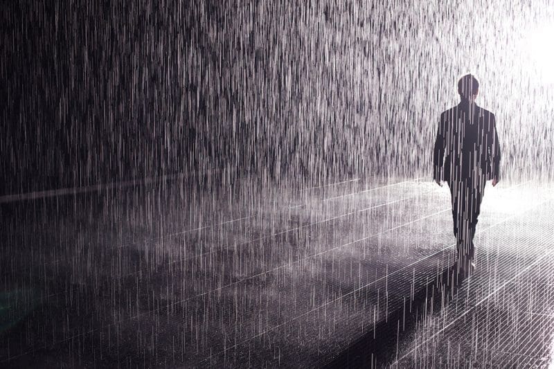 In Rain Room, the environment controls us and we control it in an uneasy symbiotic relationship.