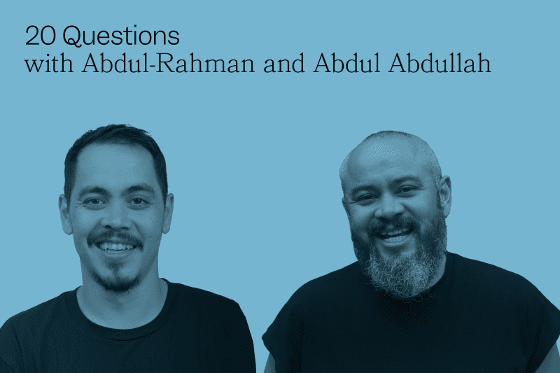 Abdul-Rahman Abdullah and Abdul Abdullah are brothers and artists. With practices distinctly their own, we asked the brothers 20 questions about their current show with Tracey Moffatt, but also about their art crushes, their most humourous memory of each other, seminal art experiences, and the link between identity and art.