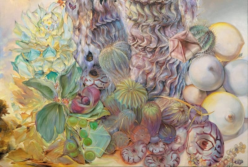 With work probing the socio-cultural conditions which define our age, Karla Marchesi’s latest paintings at Jan Manton Gallery are a bright contrast of floral forms, both in tone and colour.