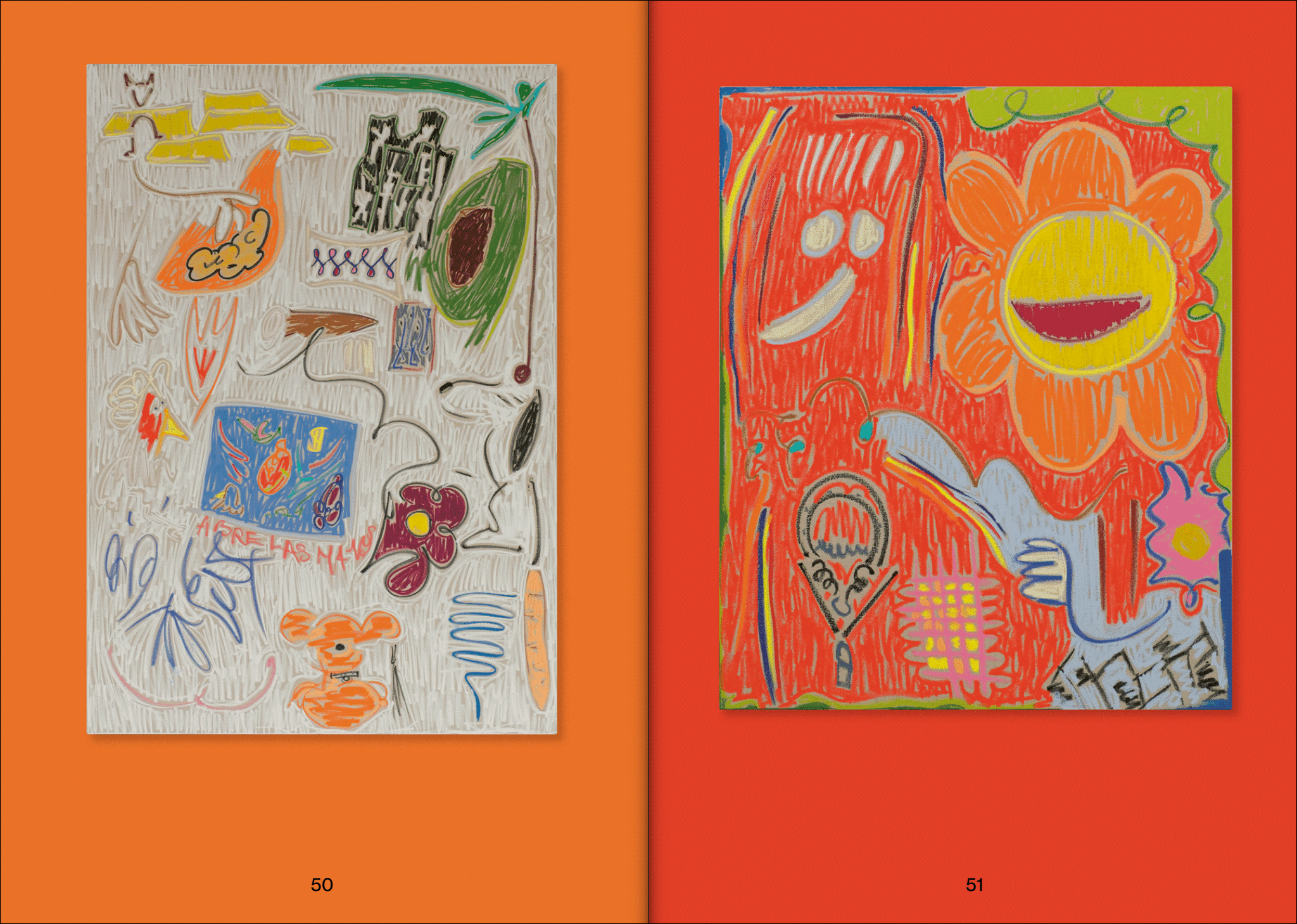 As I walk through the suburban streets, I find myself thinking about the publication Speech Patterns: Nadia Hernández & Jon Campbell. It accompanied their two-person exhibition at The Art Gallery of Western Australia in 2022, which explored their shared preoccupations with class, identity and value systems, and it’s a beautiful addition to the works that were shown. I like the way they’ve used paper of different thickness and the way it feels as you turn the pages—there’s matte, then gloss, pages of monochromatic colour, interspersed with documentation of Campbell’s and Hernandez’ colourful and poetic paintings, prints and installations. And just like my extra chilli it serves up a couple of short essays to make it complete.