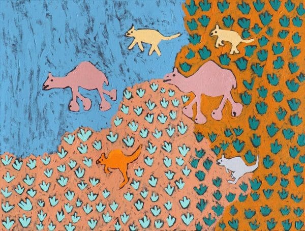 Nuha Saad’s kaleidoscopically colourful art is a tandem exploration of the ornamental and decorative, while also delicately drawing upon her Lebanese and Australian heritage. Her latest exhibition at James Makin Gallery draws upon a visual military operation known as Razzle Dazzle, which yielded fleets of vessels that looked like floating Cubist paintings.