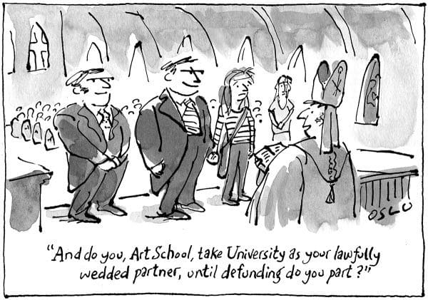 “You might have heard recently about what’s going down in Sydney’s three major art schools. One has pretty much abandoned traditional art education like painting and sculpture for an offbeat hybrid art/technology thing that costs heaps to produce but has beautiful ’research output’ value.”