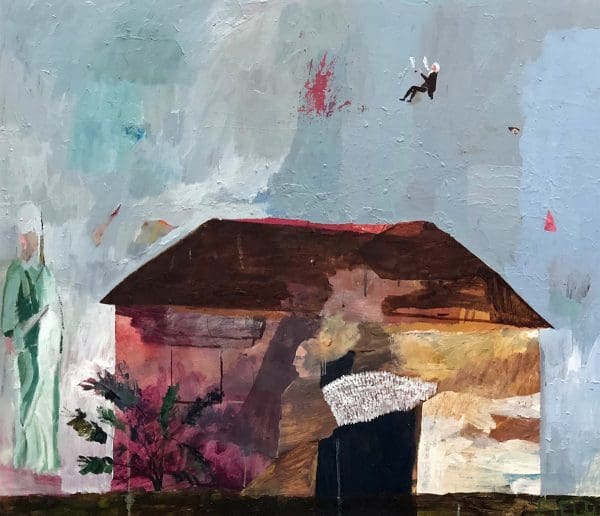 Sam Field’s paintings are like colonialist postcards from a post-apocalyptic Australian landscape. His terrains are assembled by combining national logos and images – from vintage Channel Nine logos and football teams, to Blundstone boots and lyrebirds.