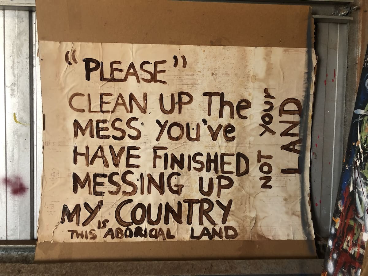 Juppurla says the Brio’s founding drive has been for the men to express themselves about where and how they are living and the challenges involved with mining destroying the land and people being taken off Country and “moved about like sheep”. “A lot of mining happened on our Country with a lot of rubbish and materials that wasn’t there before. We wanted to tell about that disengagement from our Country and tell about how we felt about the impact.”