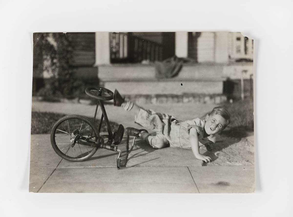 Later still, he exhibited series of multiple, unrelated photographs in a grid (paying tribute to the great German photographers Bernd and Hilla Becher). But wait! They are in fact related. One set of images shows men whose ties are all blowing in the wind in the same direction, left to right. Another grid is made up of photographs where the photographer’s shadow is cast across the foreground of the family portrait or the sunny street. Another memorable set plays on the commonality of each photographer’s thumb partly obscuring the lens. When I interviewed Pound by phone for this review he told me, “If I could find a single photograph that represented all these visual tendencies, that would be the time to stop.” I could never imagine him stopping, so I asked about other fictive museums he has created.