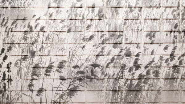 The exhibition offers expansive and personal experiences of ecological change and its impact. A video work from Jilamara Arts sees 30 artists perform their totems. Carmichael explains, “Through these totemic systems, different parts work together to support ecological balance.” Brian Robertson’s linocut illustrates connections between Country, culture and people. Megan Cope’s oyster-poles draw attention to the cultural and ecological significance of oyster reefs. Lucy Simpson’s installation highlights the vital role of freshwater mussels in culture and water protection. In response to mismanagement of water in the Murray River and its tributaries, Nici Cumpston brings attention to the history of conversations between this water site and her people. Respectively referencing marine plastics and ghost nets, Solomon Booth and artists from Numbulwar Numburindi Arts talk to the increasing pollution in our oceans. Carmichael presents diverse works encoded with cultural memory that play “powerful roles in how we care for water sites across the continent.”