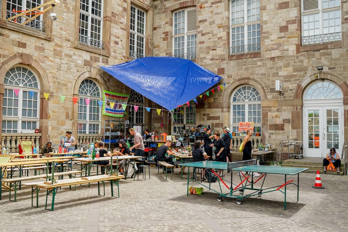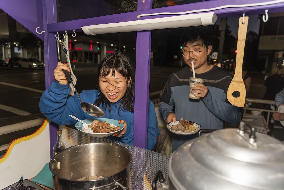 Zhang’s formative experiences of share houses in Brisbane came back to her in 2022, when she spent fifty days with Pari living in a dormitory in Kassel’s Museum Fridericianum alongside Indonesian collective Gudskul and 40 others as part of documenta fifteen. “The dormitory was out of necessity, but I think Gudskul were able to think creatively about how to use space. And maybe we don’t think that creatively here. Or we don’t want to.” The program, Sekolah Temujalar, connected different collectives who then ate, slept, lived and worked together exploring ideas of collectivity. In 2023, Pari brought this idea home with Lumbung in Western Sydney. “The lumbung concept is of the rice barn where everyone can pool their resources—their rice—so that anyone in the community can be fed,” explains Zhang.