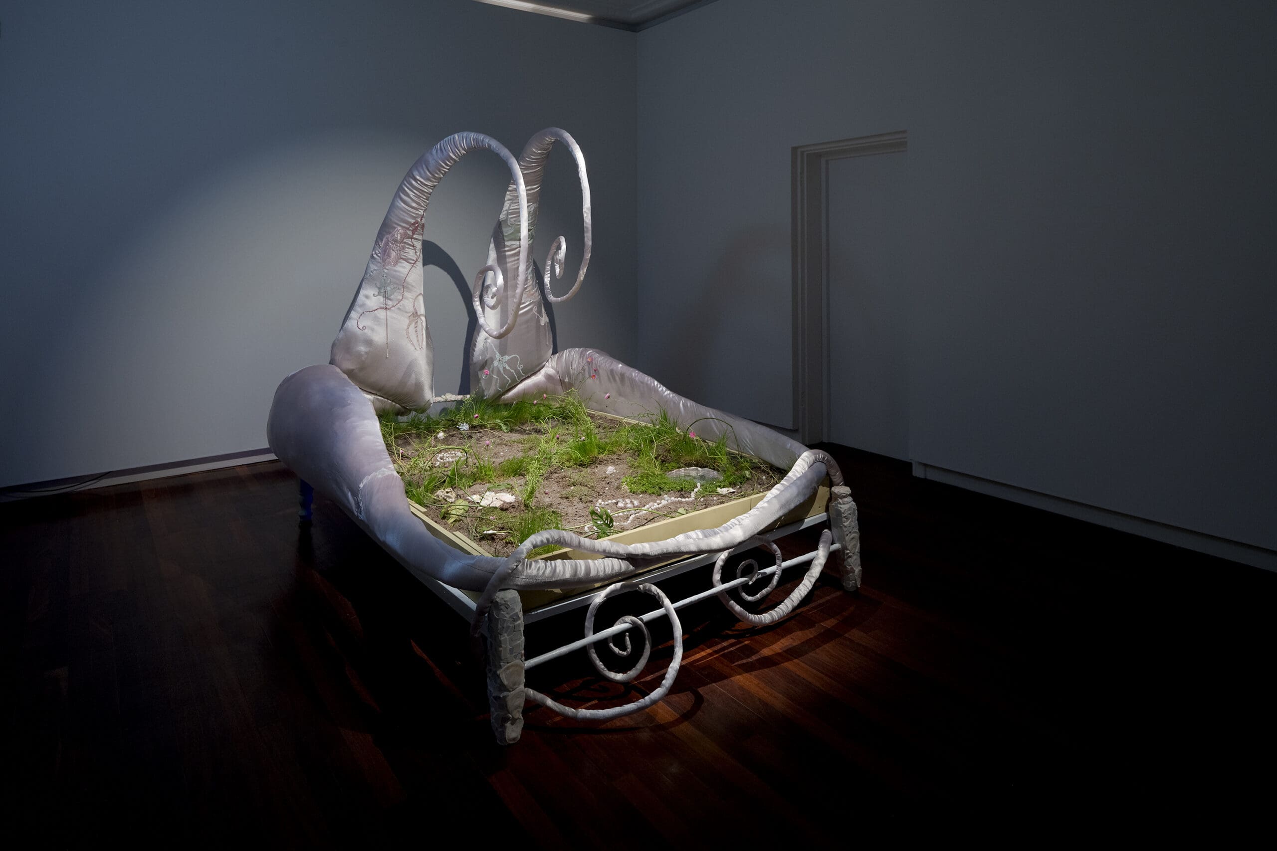 Brighde O’Hara presents a soft sculptural bed-like form. Thinking about dead rot, while talking through the language of soft sculpture.