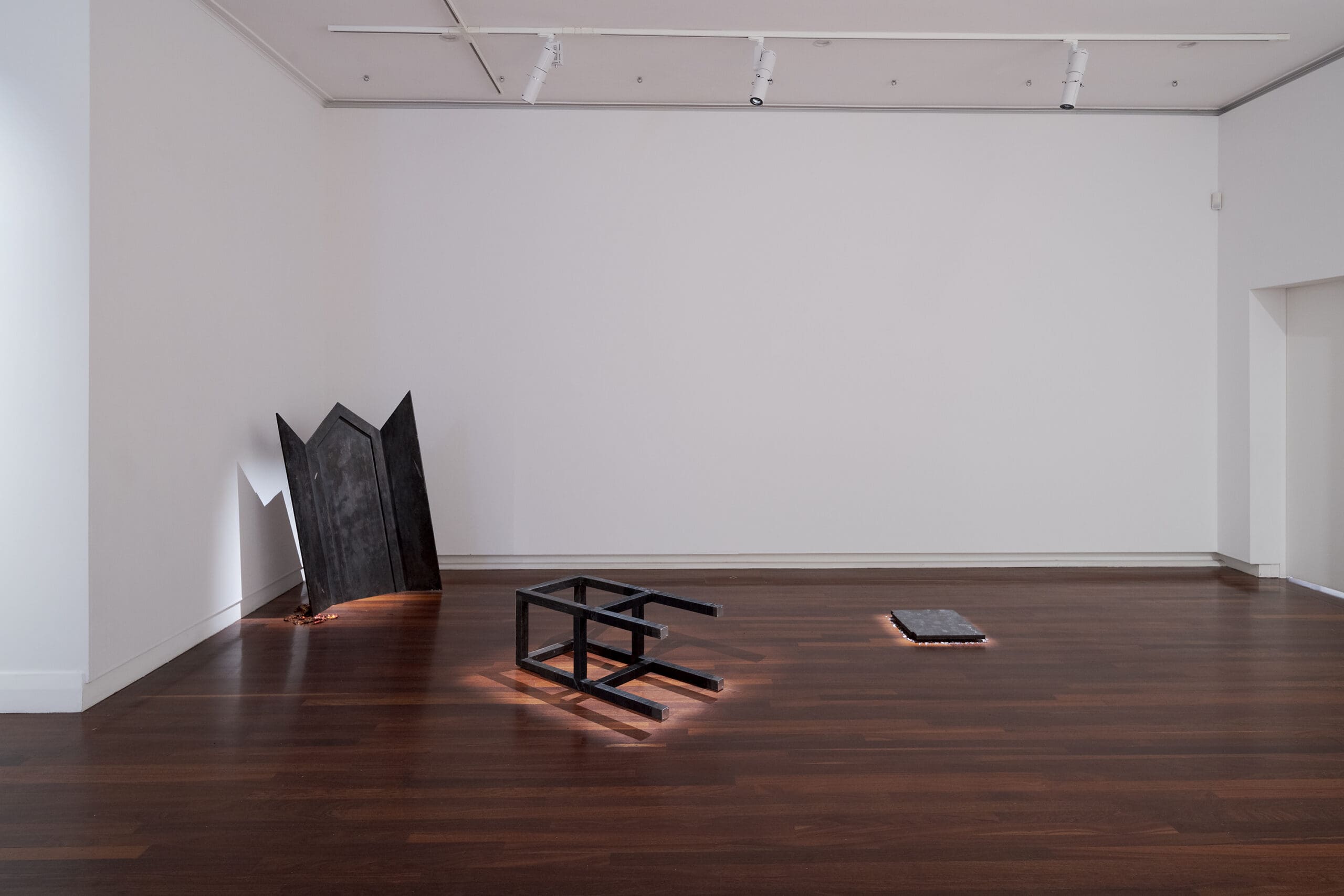Bryce Olsen and Pip Lewi are both reasonably recent Curtain University graduates. Olsen has produced a continuation of his well-known sculptural forms. “Olsen thinks a lot about the lure, desire and traps of furniture. About what happens when a piece of furniture becomes questionable,” Boye says. The burnt timber surfaces of Olsen’s sculptures reference the lure. On the sculptures sit aluminium hand-cut casts of flies. As Boye says, “these bugs have been lured by the sculptures.”