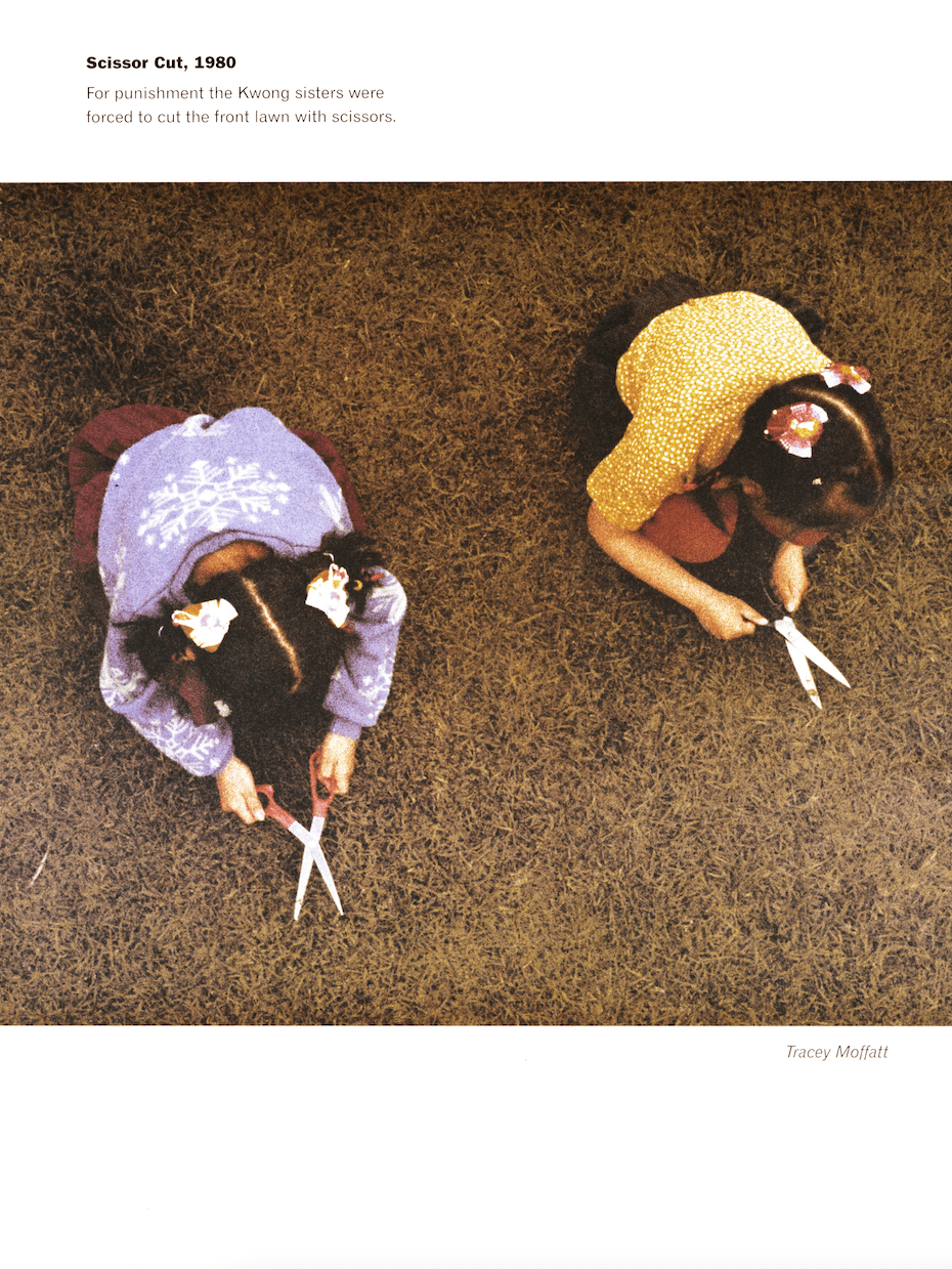 Tracey Moffatt, Scissor Cut, 1980, 1999, from the series Scarred for Life II, offset print, 80 x 60 cm, Edition of 60 + 10 APs Courtesy line: Courtesy of the artist and Roslyn Oxley9 Gallery, Sydney