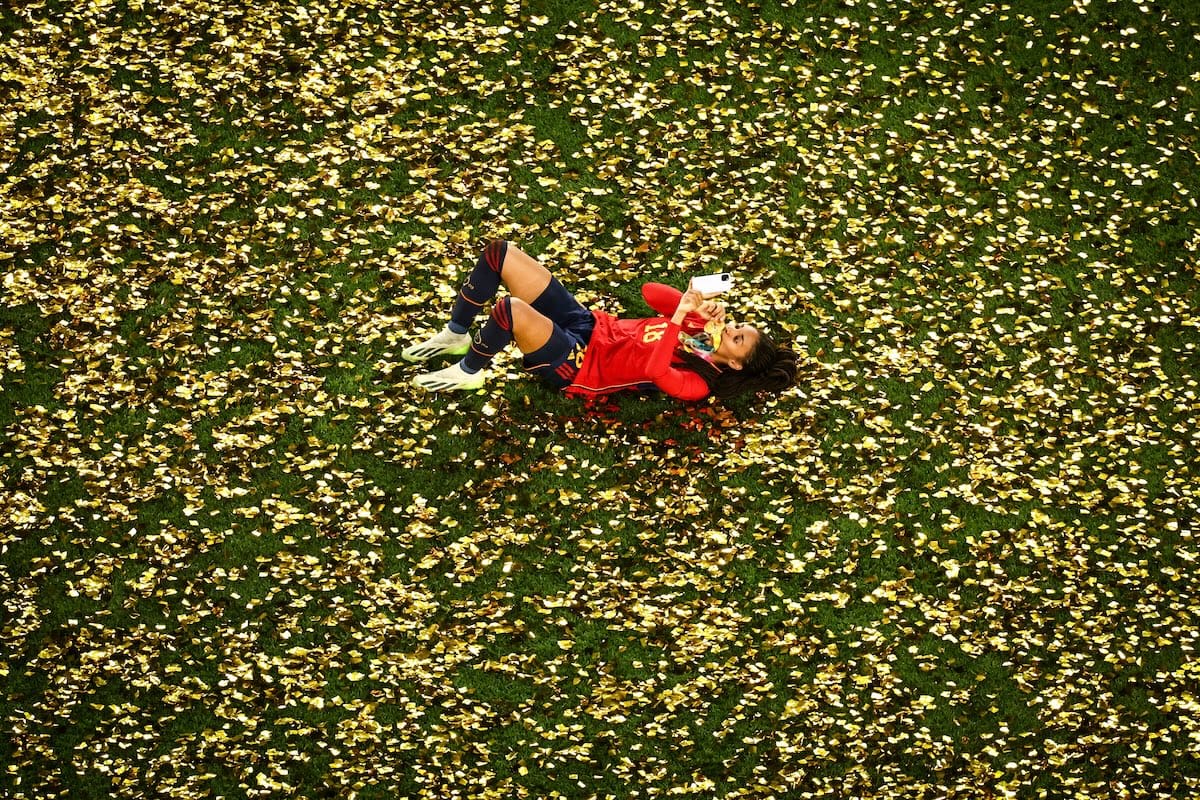 David Gray, AFP, ‘Moments In Sport’, Golden Kiss: Spain’s Salma Paralluelo kisses her medal as she lies on her back amongst confetti talking on her phone, after Spain defeated England 1-0 in the final of the 2023 FIFA Women’s World Cup at Sydney’s Stadium Australia.