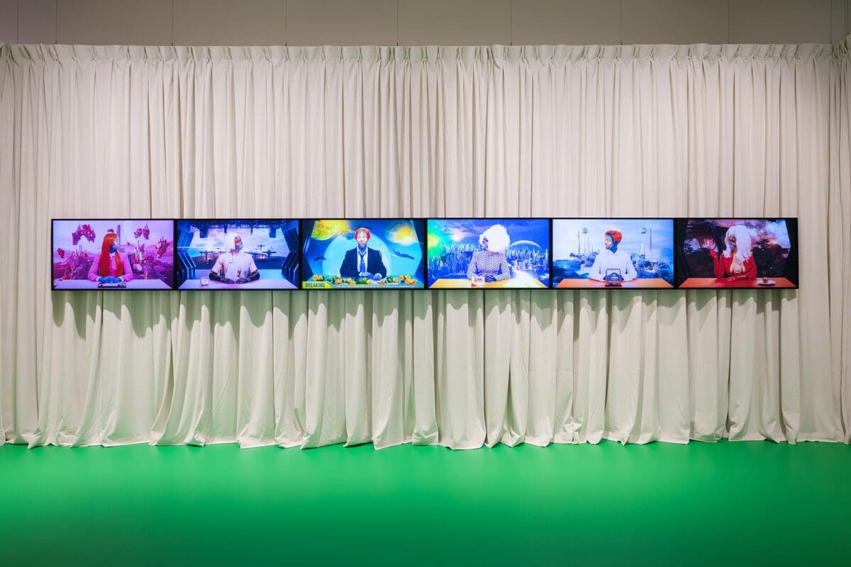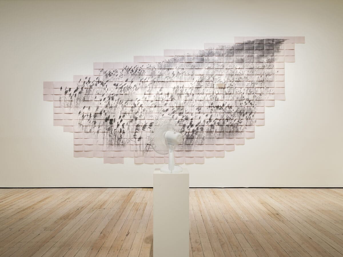 Significantly, I felt that Isaac Chong Wai’s large-scale video installation and performance Falling Reversely (2021-24) that is presented on the highest floor of the gallery strengthened this, as movement of bodies on the screen in addition to movement that is required to experience the work, evoked emotional movement within. Working with performers of Asian descent in response to anti-Asian racism and violence, the video work, which plays out across seven screens that are installed across the floor depict the performers either falling individually or in a group, but in reverse.