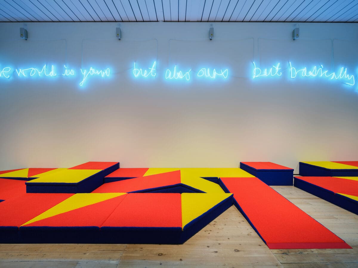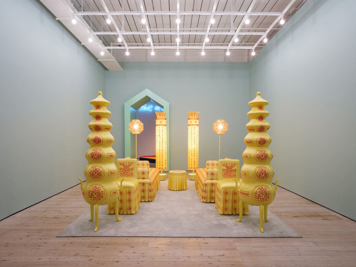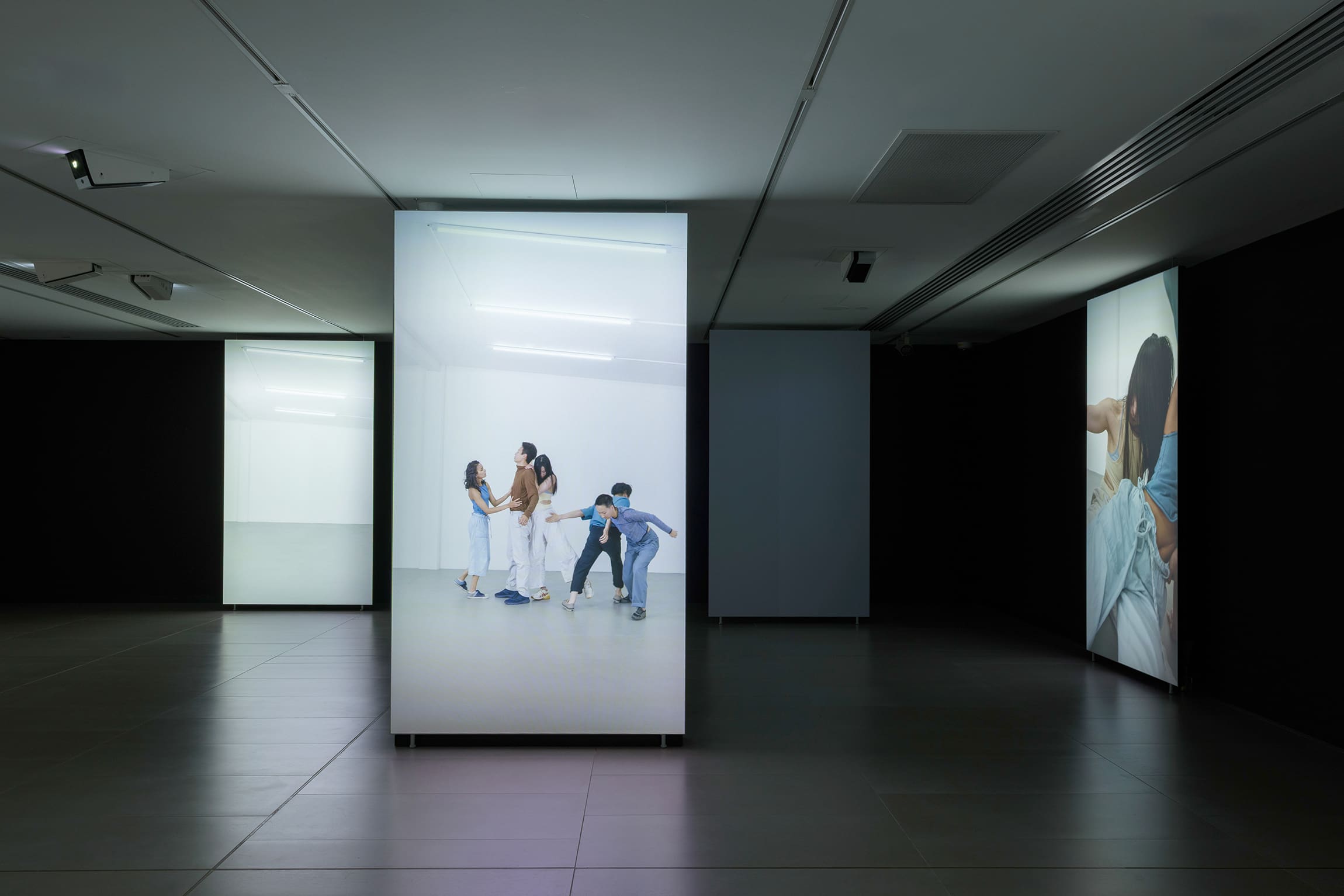 These ways of experiencing Tender Comrade continue to extend into other floors of the gallery, such as through white curtains and coloured floors that are used to support the presentation of Sin Wai Kin and Lin Zhi Peng (No.223)s’ works, bringing in a softness that contrasts with the typical white walls and flooring. Invisibility, censorship, and the relational troublings that Tender Comrade aims to speak on are empowered by these physical provocations, and kin-aesthetics, which exists as the melding of kin, kinetics and aesthetics, comes to the fore.