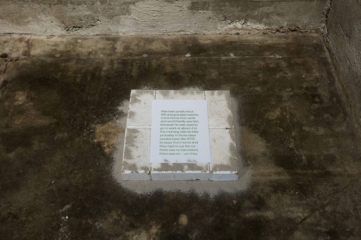 The Condensery was the first condensed milk factory in the Australian colonies and became the repository where procurement records were kept. O’Dwyer tells me one of the owners was Colin Munro, an advocate for blackbirding (the process of abducting people for forced labour). In response to the site, O’Dwyer created a sculpture with artificial shells arranged on a doormat in reference to her South Sea Islander heritages, and how it now has to be bought back—that they’re not on their land anymore.