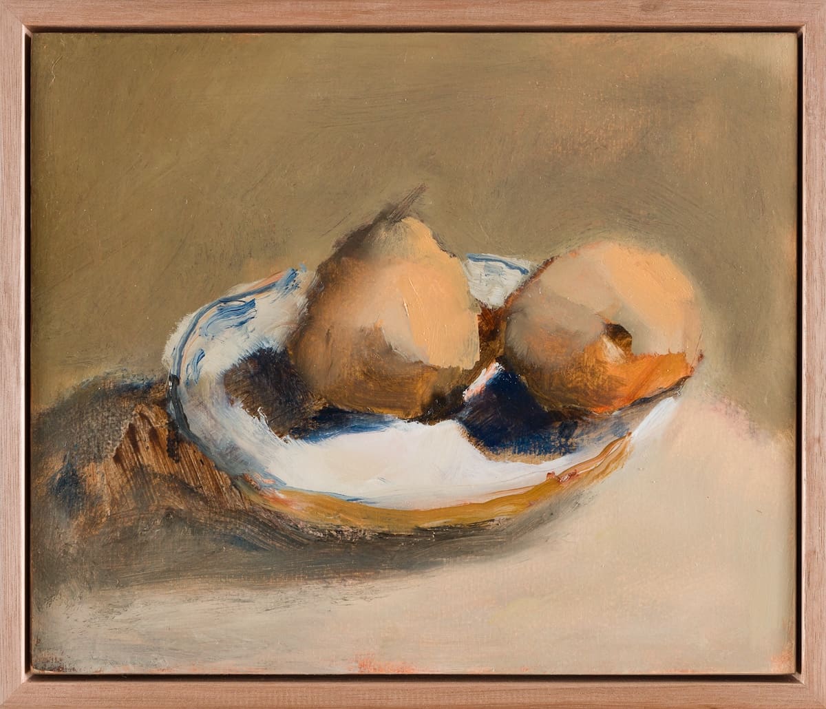 Breathwork is the first show where this new technique is evident. It also includes objects that have not been depicted before, such as shells, but McCall’s affinity for earthy tones remains. “My palette has always been very muted and drawn from the Australian bush,” she says. “My objects are earthenware, pots, gum leaves, handmade ceramics, lemons…It’s more about the way they’re painted rather than the actual objects.”