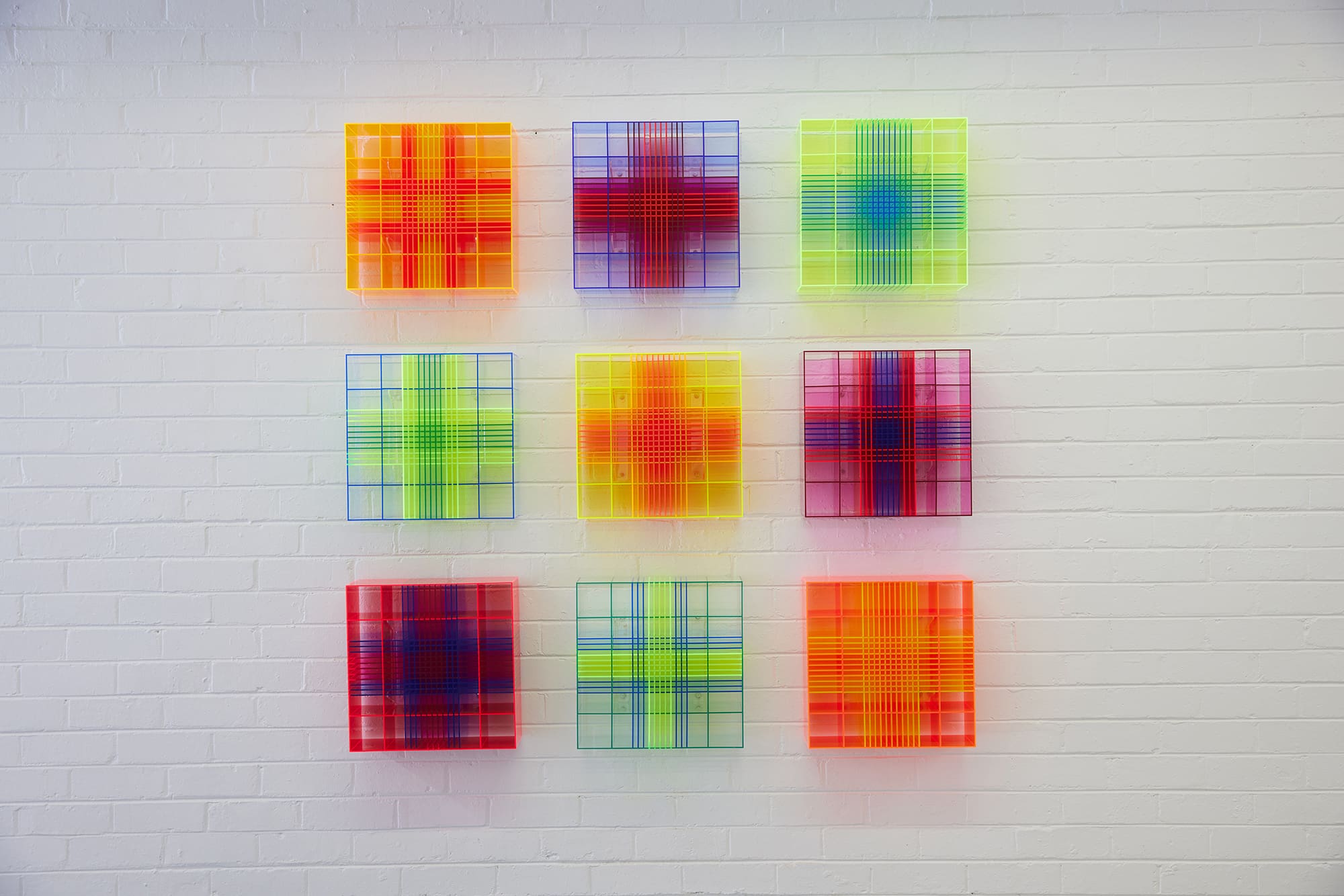 My curiosity with the formation of new and unknown colours inspired me to create these sculptures. I was interested in the idea of textiles translated in a new medium with the added elements of translucency and light. The colours shift throughout the day depending on the light.