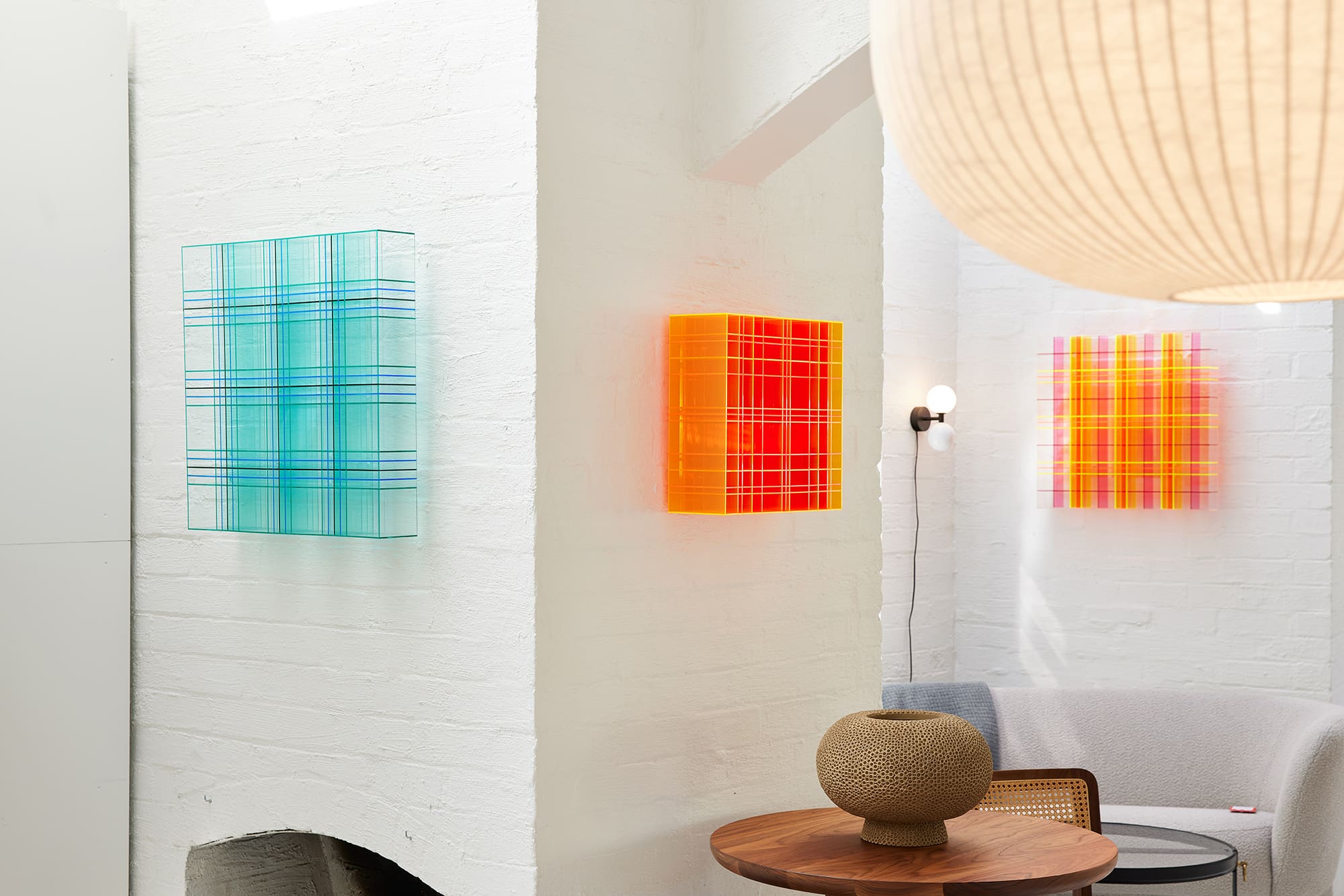When I decided to actually sit down and embark on my acrylic sculpture idea, the process of working solo was my first challenge. I had to get used to working on my own, without a large team, so initially it was quite challenging. I needed to get closer to what I was creating, and I didn’t want the restraints of commercial design as it had been such a long time since I sat down and made something purely for myself, to fulfill an idea. I wanted to tap into that ‘raw creativity’ again. I spent 18 months just trying to work out how to take it from concept to three-dimensional form—how does it stay together, what are the weight constraints, how are the colours interacting. The rigid, acrylic material was used to emphasise the woven structure, almost as though the viewer is observing a section of tartan cloth through a magnifying glass.