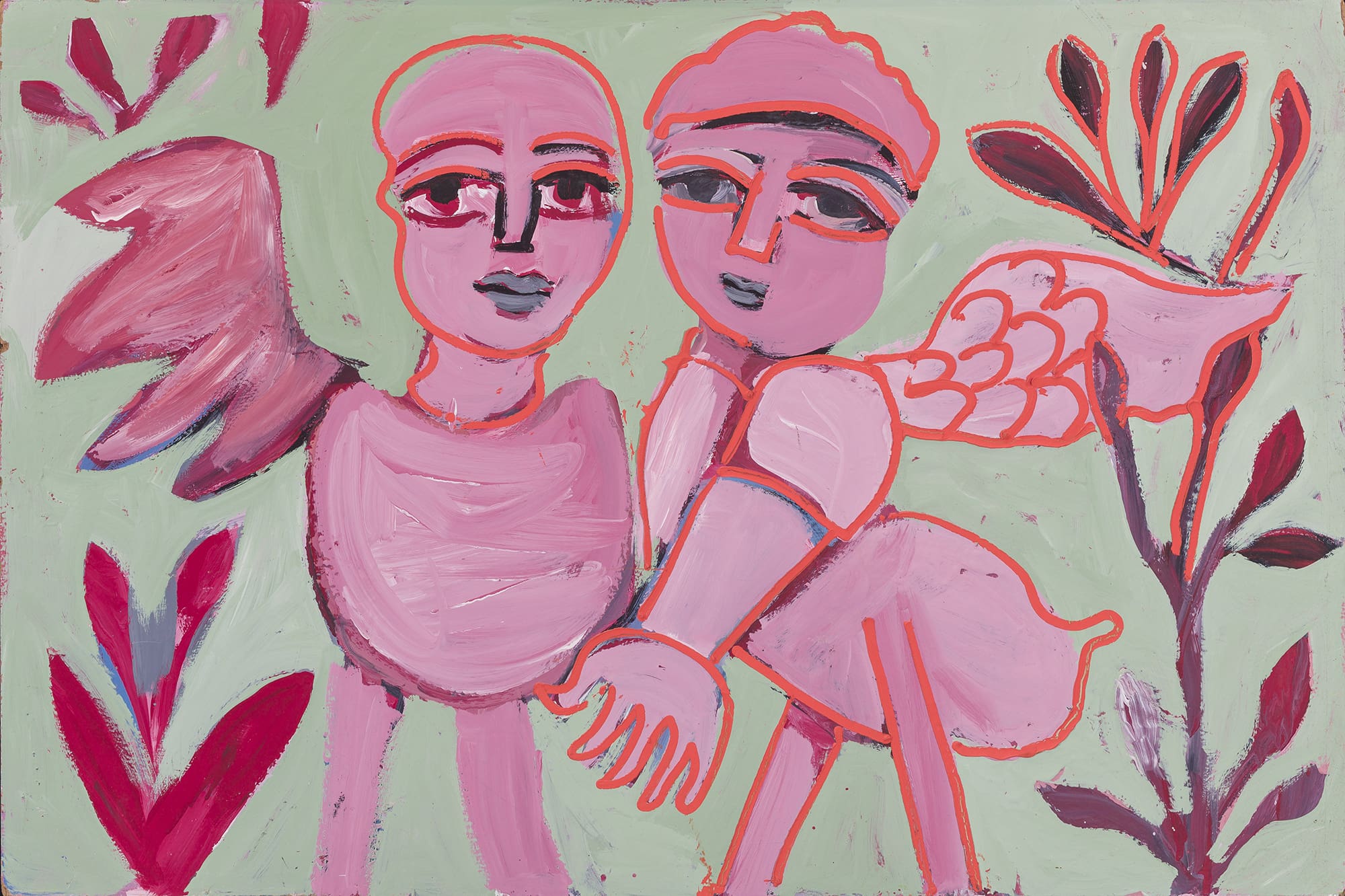 I first saw Mirka’s work when I visited her café and gallery, Tolarno, which is now a hotel, in St Kilda. I love the mystical creatures, wide-eyed children, serpents, angels, devils, and other elements which don’t belong to our physical world. Her paintings and drawings have this translucent quality which is so fascinating. They are inflected with fantasy, uniting personal and mythological themes. She painted a lot of white over colour and she also had a history in textiles. Mirka went from painting these incredible otherworldly creatures to creating soft-sculpture dolls, which took a three-dimensional form. She was trained in theatre and mime, and as an adult she also collected antique dolls, before she finally started creating them herself in 1970 out of paint and cloth.