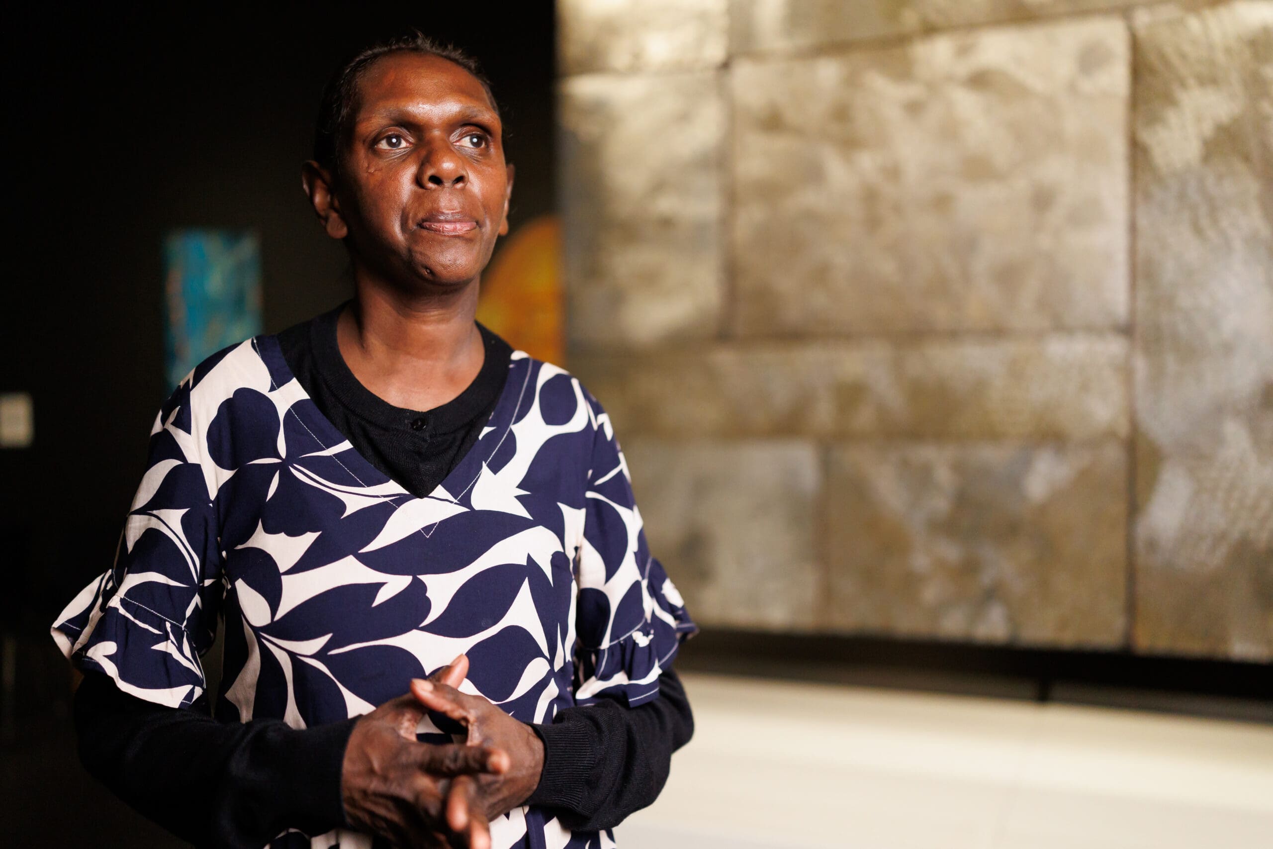 “Gaypalani Waṉambi is the winner of the 2025 Telstra Art Award valued at $100,000 for her etched steel and aerosol work Burwu, blossom. This is an exceptional work that visually and materially explores different relationships to and understandings of Country. Presenting two worlds with two sides, the epic Ancestral journeys of Wuyal are delicately engraved onto the silvery surfaces of discarded road signs. Each time the viewer moves, the work responds accordingly, revealing and concealing the undulations and intangible lifeforces of Country. Each jewel-like panel shimmers with exquisitely rendered designs that are deeply anchored to Yolŋu philosophies. Despite its scale and its composite parts, there is a visual cohesion to the work that has been ambitiously, intentionally and expertly assembled.”
